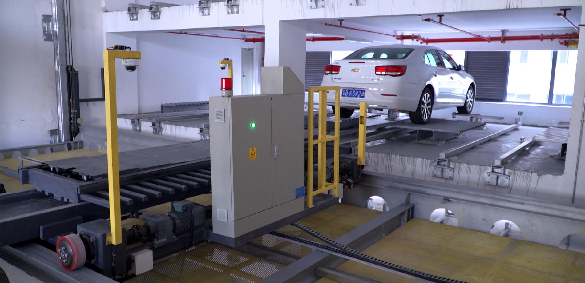 本項目為垂直升降類梳齒式立體車庫,一共9層,車庫配備5套升降機,5套平移車及搬運器,10個出入口,可以滿足周邊的停車需求。